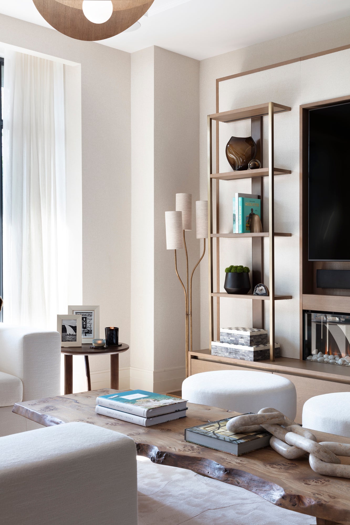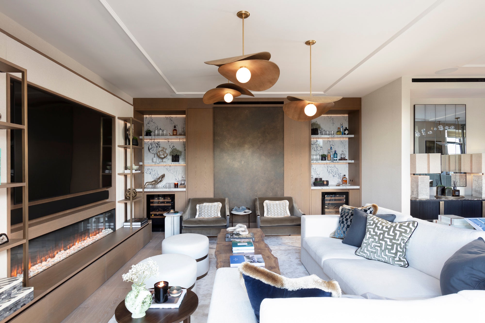 The scope included complete reconfiguration of the kitchen and bathrooms, bespoke joinery to the lounge and study spaces, and the integration of a comprehensive lighting, audio-visual, and environmental control system, creating a seamless and intuitive living experience.