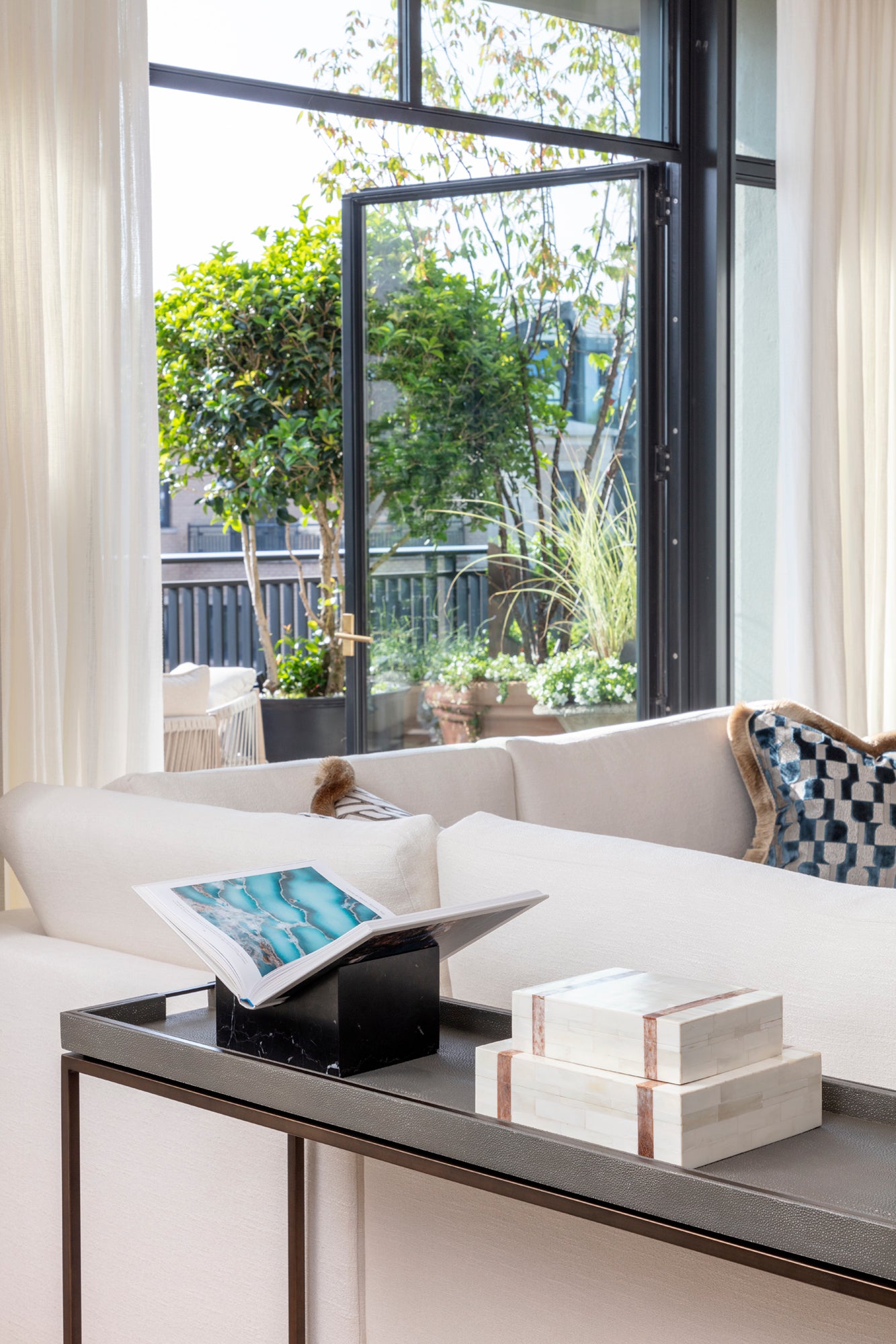 A full turnkey refurbishment of a luxury penthouse apartment in Kensington, located just moments from Hyde Park. Set within a Grade II listed Edwardian building, the 3,800 sq ft, four-bedroom residence with two bathrooms and two private terraces was reimagined as a refined yet highly functional home, balancing elegant entertaining spaces with integrated work and private living areas.